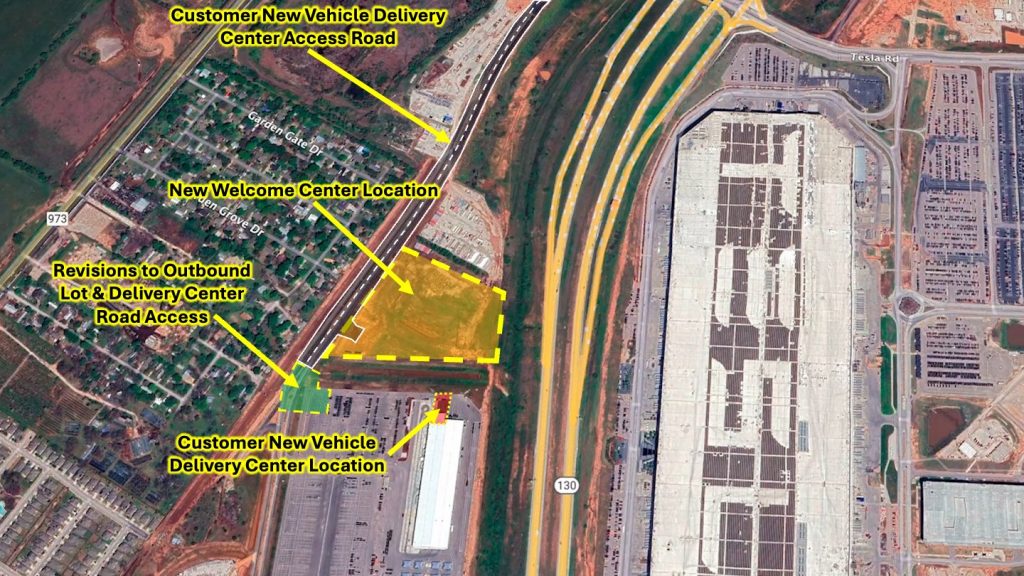 Tesla originally planned to construct a separate “Welcome Center” closer to Tesla Road, but those plans have now shifted. Instead, the visitor facility will be built just north of the End-of-Line building, taking advantage of the new public road connection.