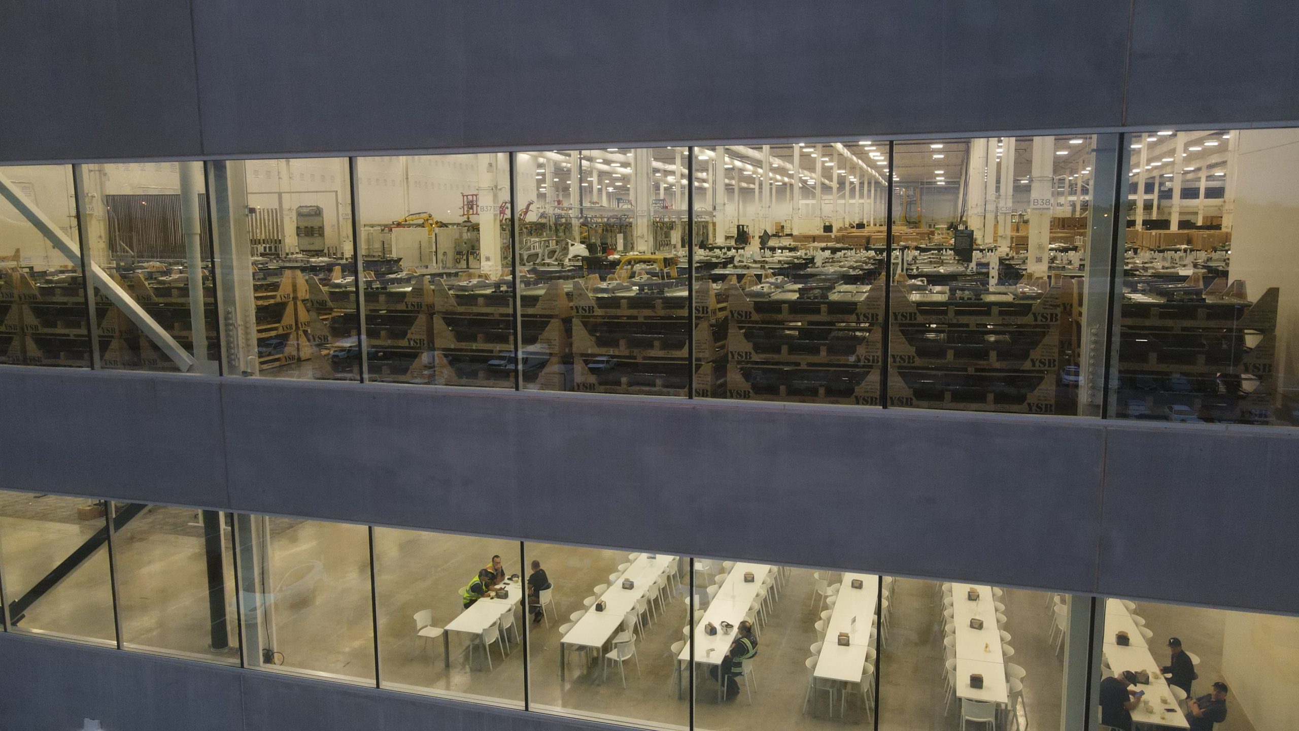 During an early-morning drone flyover by Joe Tegtmeyer (@JoeTegtmeyer) spotted hundreds of the structural battery packs on the third floor of the factory. Many of the packs are sitting in crates with the letters “YSB” painted on the side, confirming these are indeed Model Y Structural Battery packs.
