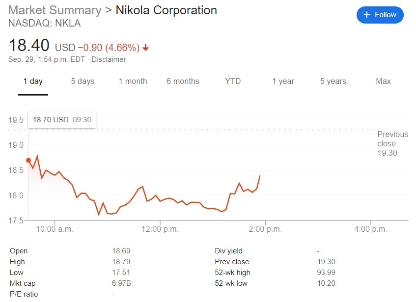 Nikola (NKLA) shares were down nearly 5% during trading on Tuesday, trading at around $18 per share. Shares were as high as $50 after the deal with GM was announced.