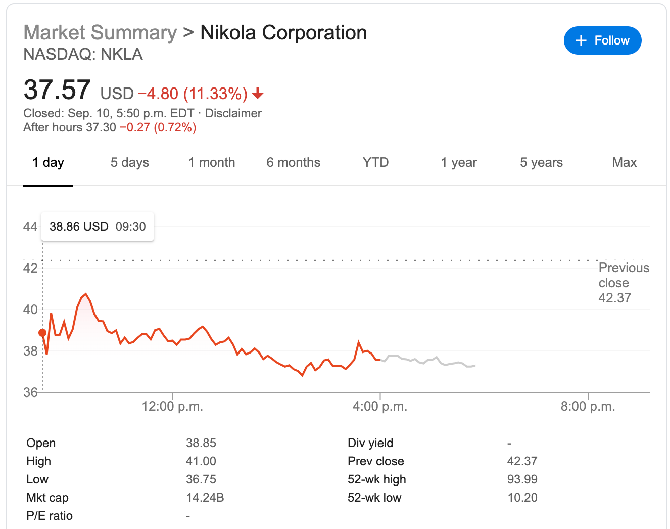 Nikola shares (NKLA) fell more than 11% after the release of the report.