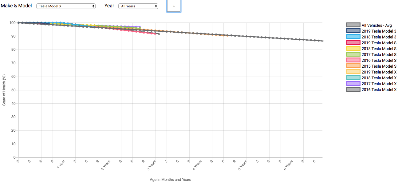 You can compare the degradation over time of all Tesla models against other vehicles used in the study by using Geotab’s comparison tool.
