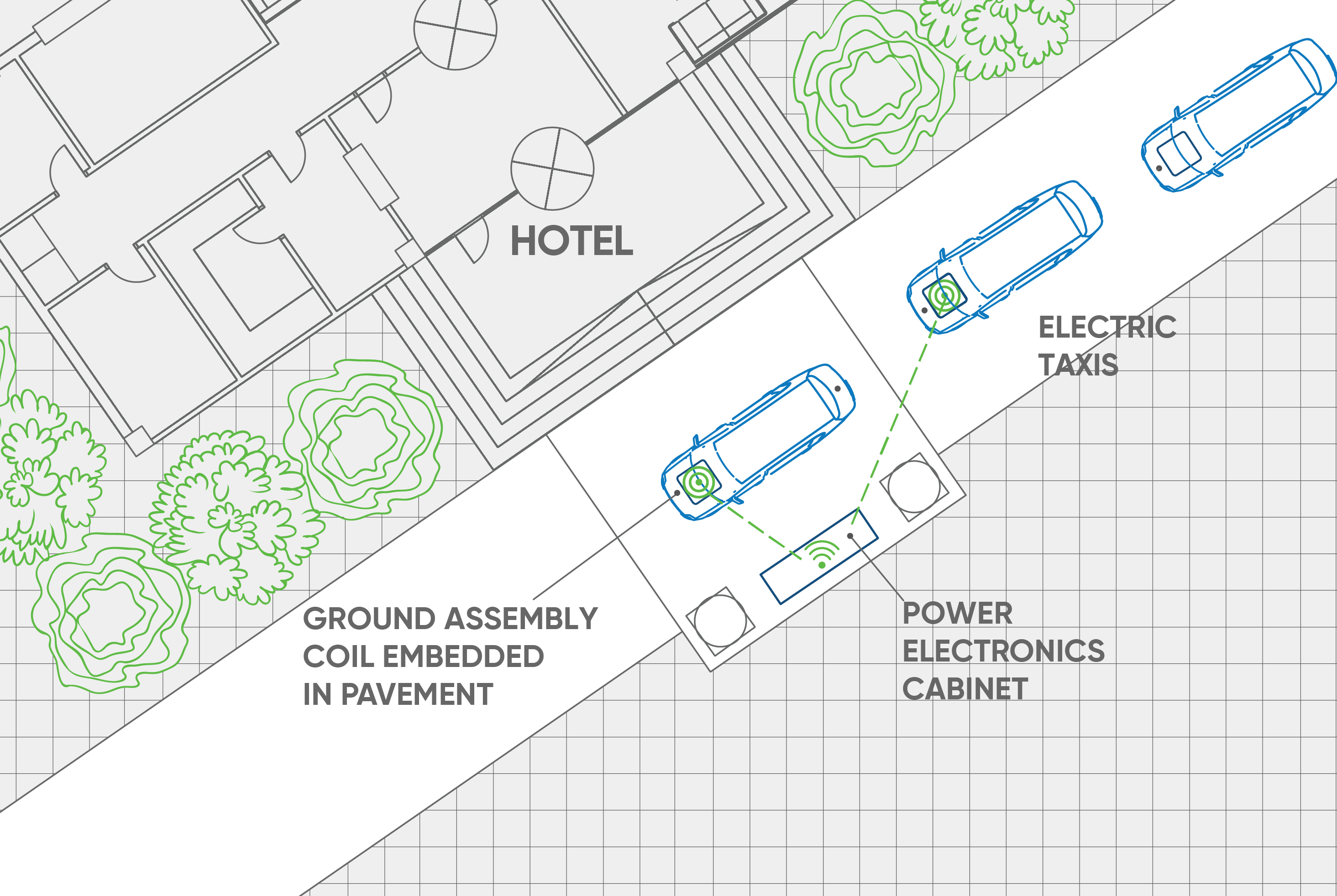 The unique part of the project is that the electric taxis will be charged wirelessly to help avoid downtime.