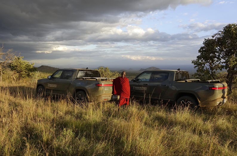 The group received four R1T vehicles as part of the pilot project, all of which are currently working in the Chyulu hills of Kenya.