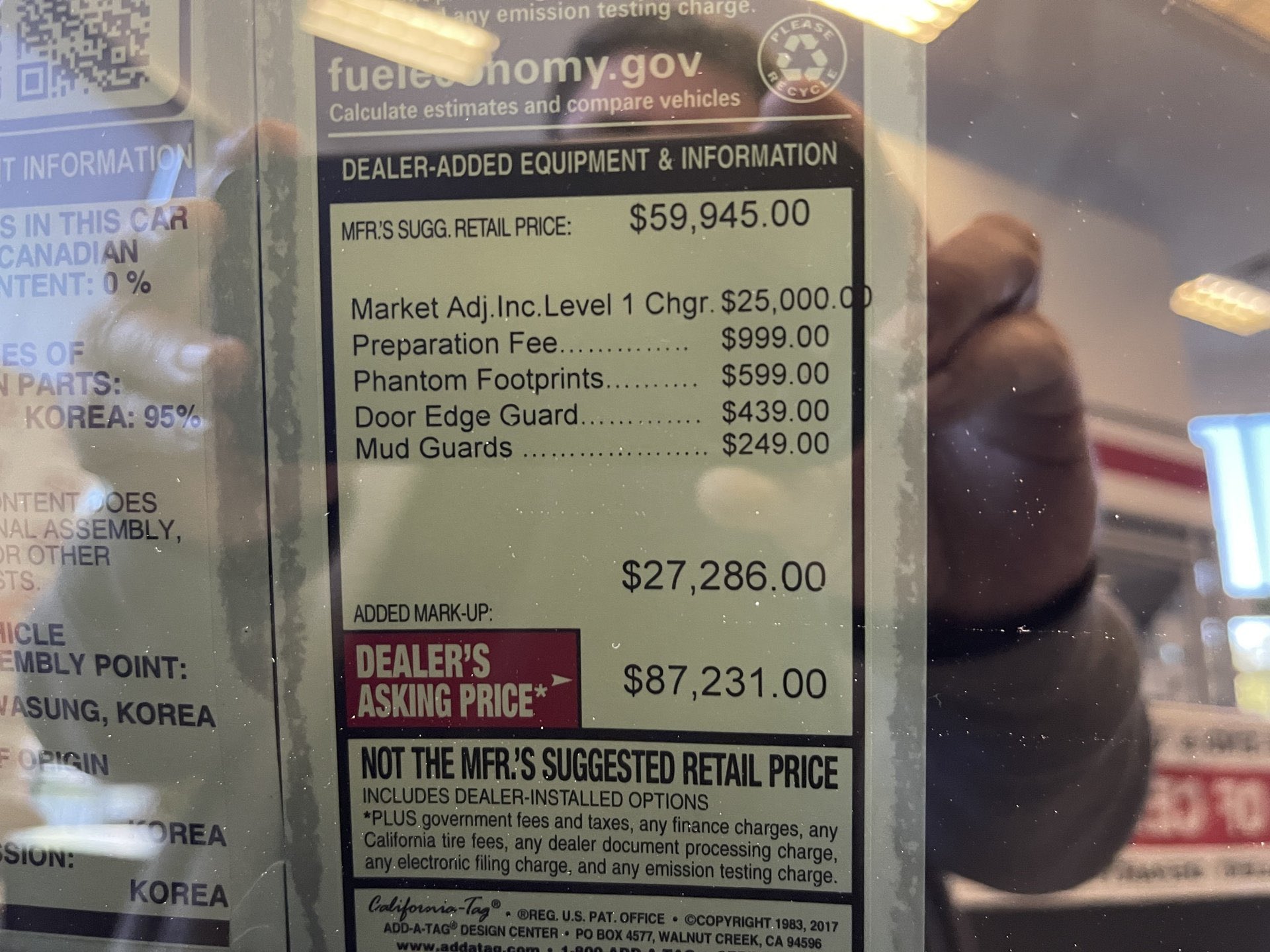 Breaking it down, $12,500 of that is a “market adjustment,” $3,995 is an added “interior protect” package, with another “Pro Pack” added on for good measure at $2,495.