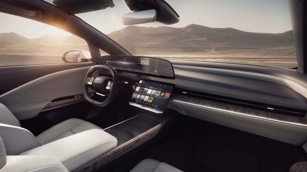 Inside, the SUV features a 34-inch 6K OLED display, Lucid UX 3.0 software with over-the-air (OTA) updates, and an optional augmented-reality head-up display. Sliding second-row seats, tray tables, and multiple USB-C ports ensure comfort and functionality for both families and business travelers.