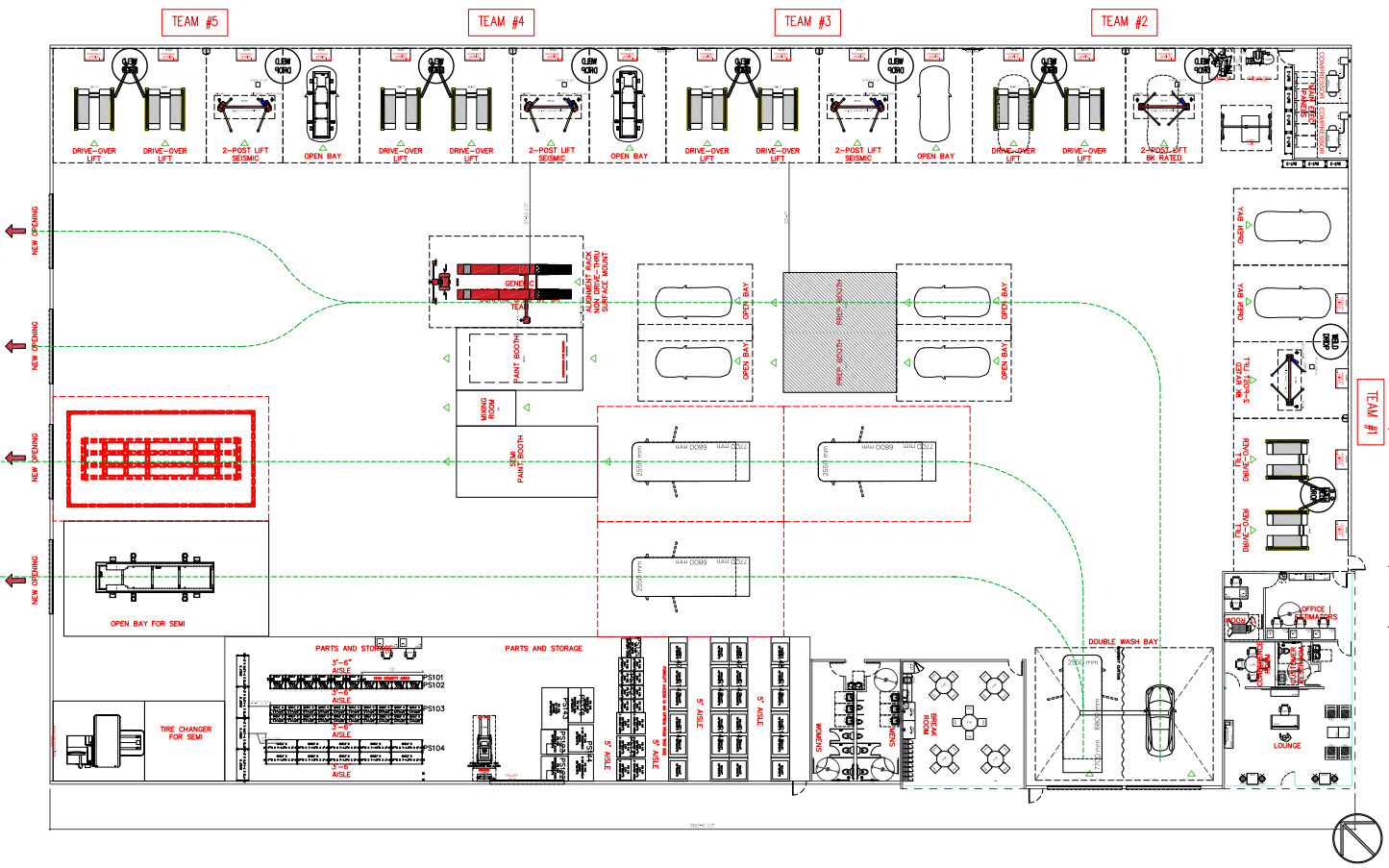 There will also be a double wash bay at the bottom right corner that also includes a space for the Semi.