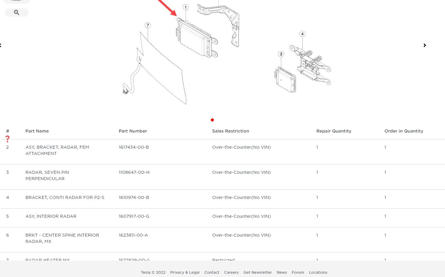 In reviewing the Parts Catalogs for the other vehicles, only the Model S also has this new radar sensor, but it does not appear in the same section as the Model X.