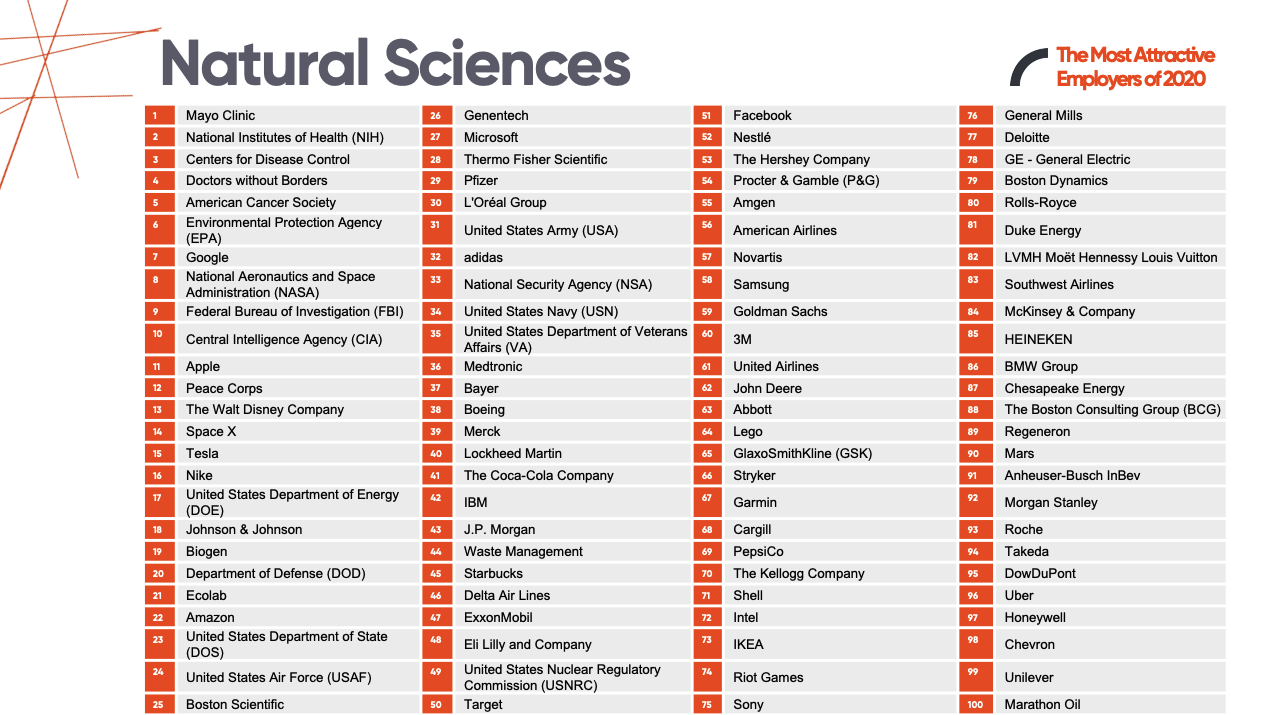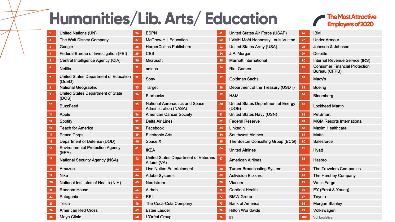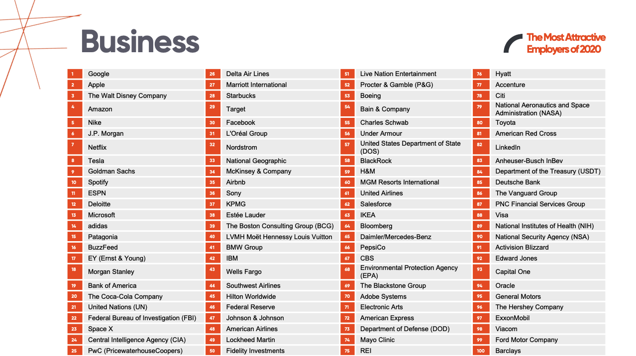 Universum, an employer branding specialist, analyzed the responses, which asked the respondents what they consider most important in an employer, and then ranked the top 100 in each category.