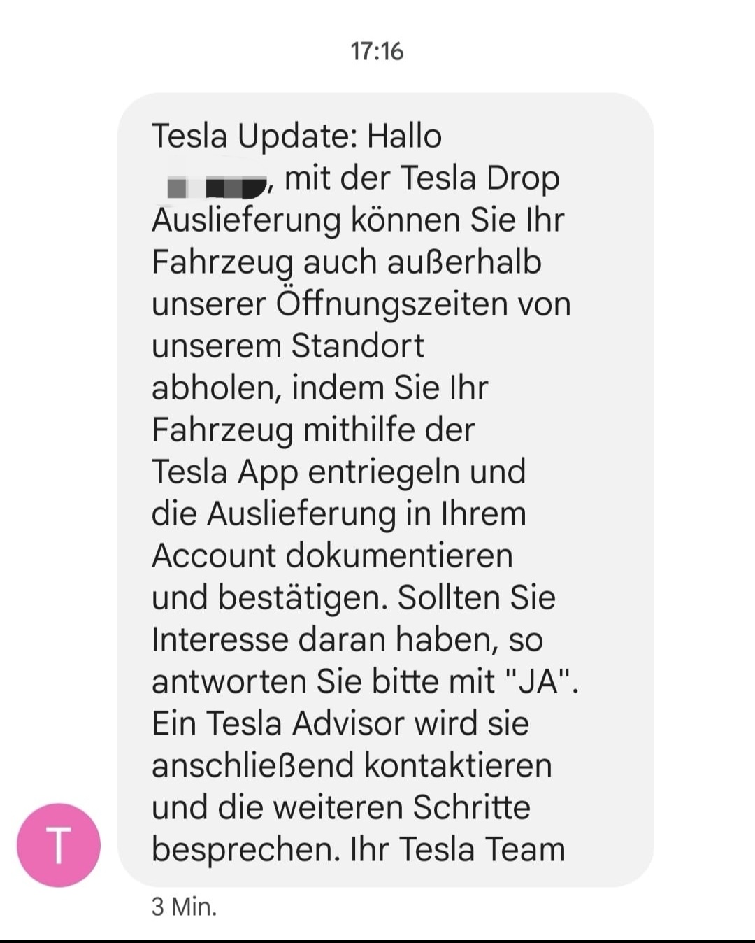 According to a text message received by a reservation holder in Germany, the new service works through using the mobile app and your Tesla Account.