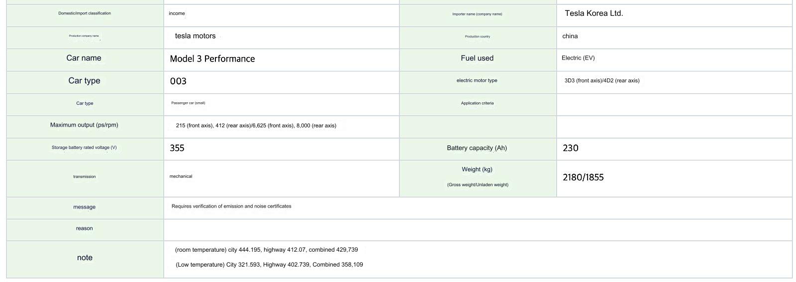 Previously, European certification documents have suggested the Model 3 Performance will also be getting performance upgrades to match the new looks, and now documents out of South Korea have given us our first look at some potential specs.