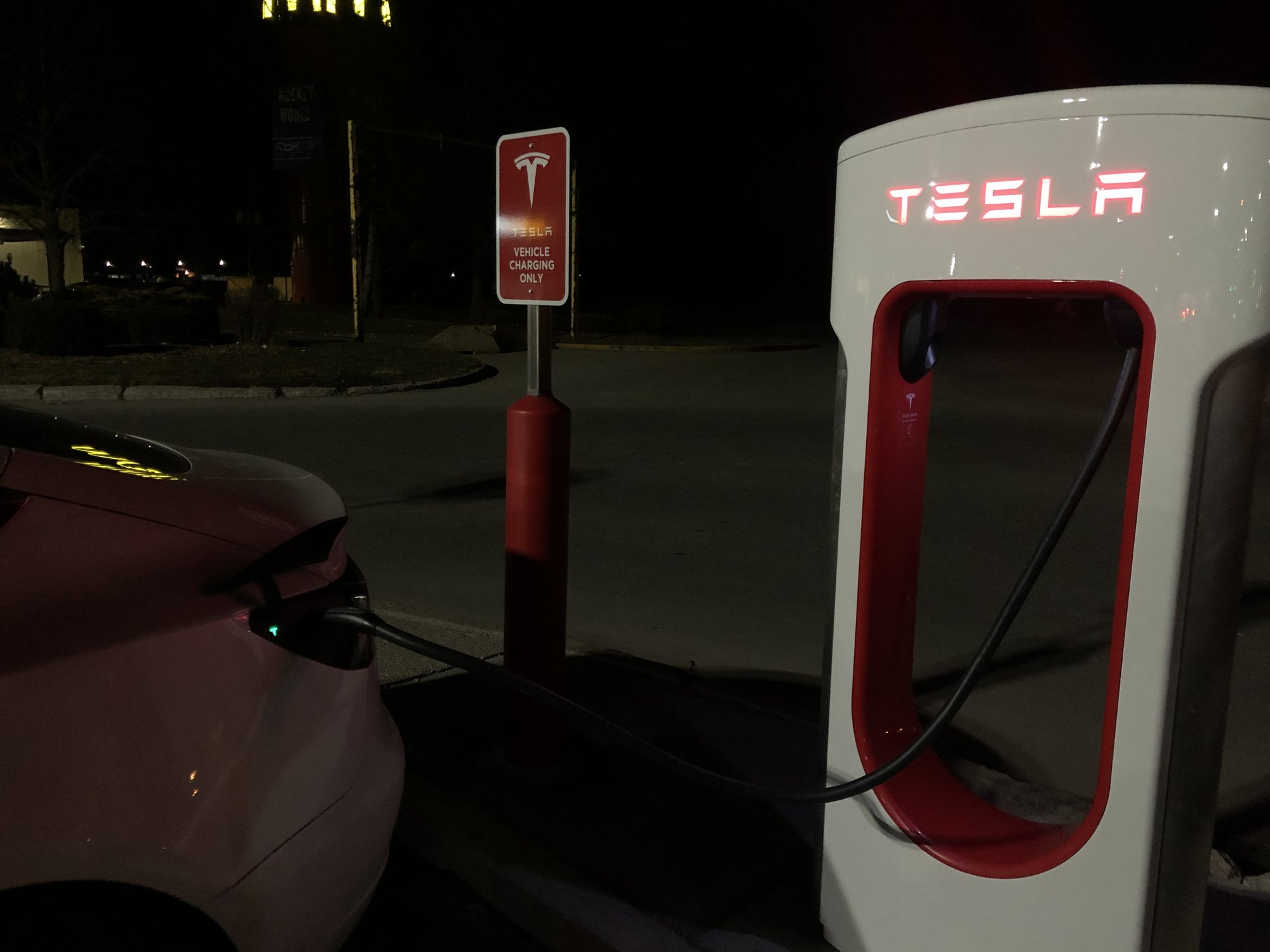 Now tonight they are finally up and running. TMC member 00kevin posted these photos of his Model 3 Supercharging at the site. Unfortunately his pictures don’t show the charging rate, only that his charging session had 20 minutes remaining.