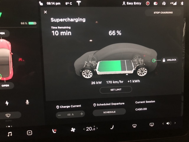 Now nearly 2 months later, Tesla owners in the lower mainland have another option to Supercharge, as the first user has reported the Superchargers were operational tonight. TMC member Rollinozone posted these photos of his Model 3 Supercharging at the new site.