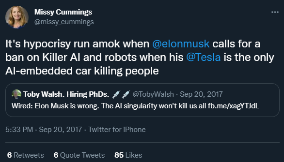 While you might not have heard the name Missy Cummings (as she is known on Twitter), the appointment should be a concerning one for all Tesla fans and investors.