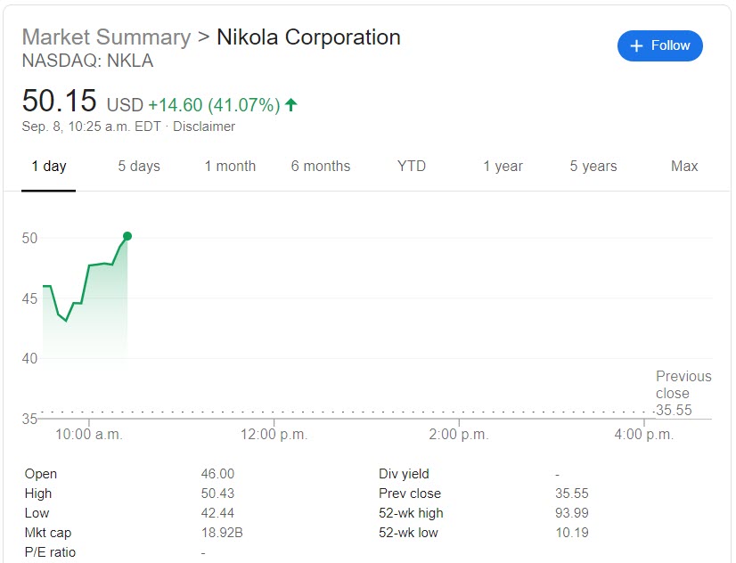 Nikola shares (NKLA) were up more than 40% after the announcement, while General Motors (GM) shares were up a more modest 8%.