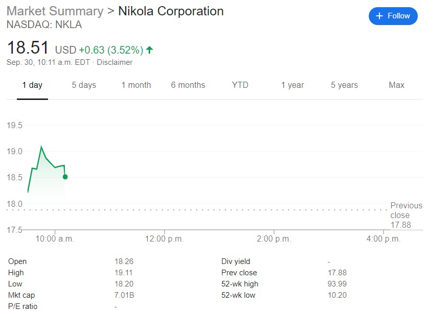 Nikola shares (NKLA) rose more than 3% in early morning trading after the news was released.