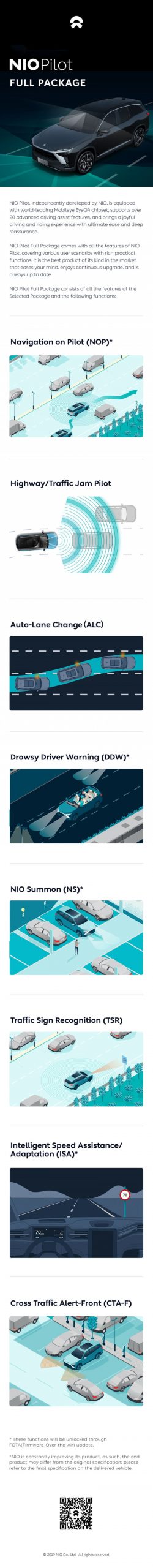 “NOP is based on the deep fusion of the navigation system and the NIO Pilot features. It enables the vehicle to drive on and off ramps, pass other vehicles, merge lanes, and navigate planned routes. The price will remain at RMB 39,000.”