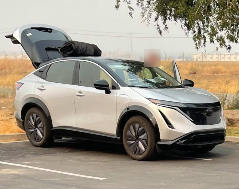 Noticing the unusual attempt to protect its identity, a closer look confirmed it was in fact the Nissan Ariya.