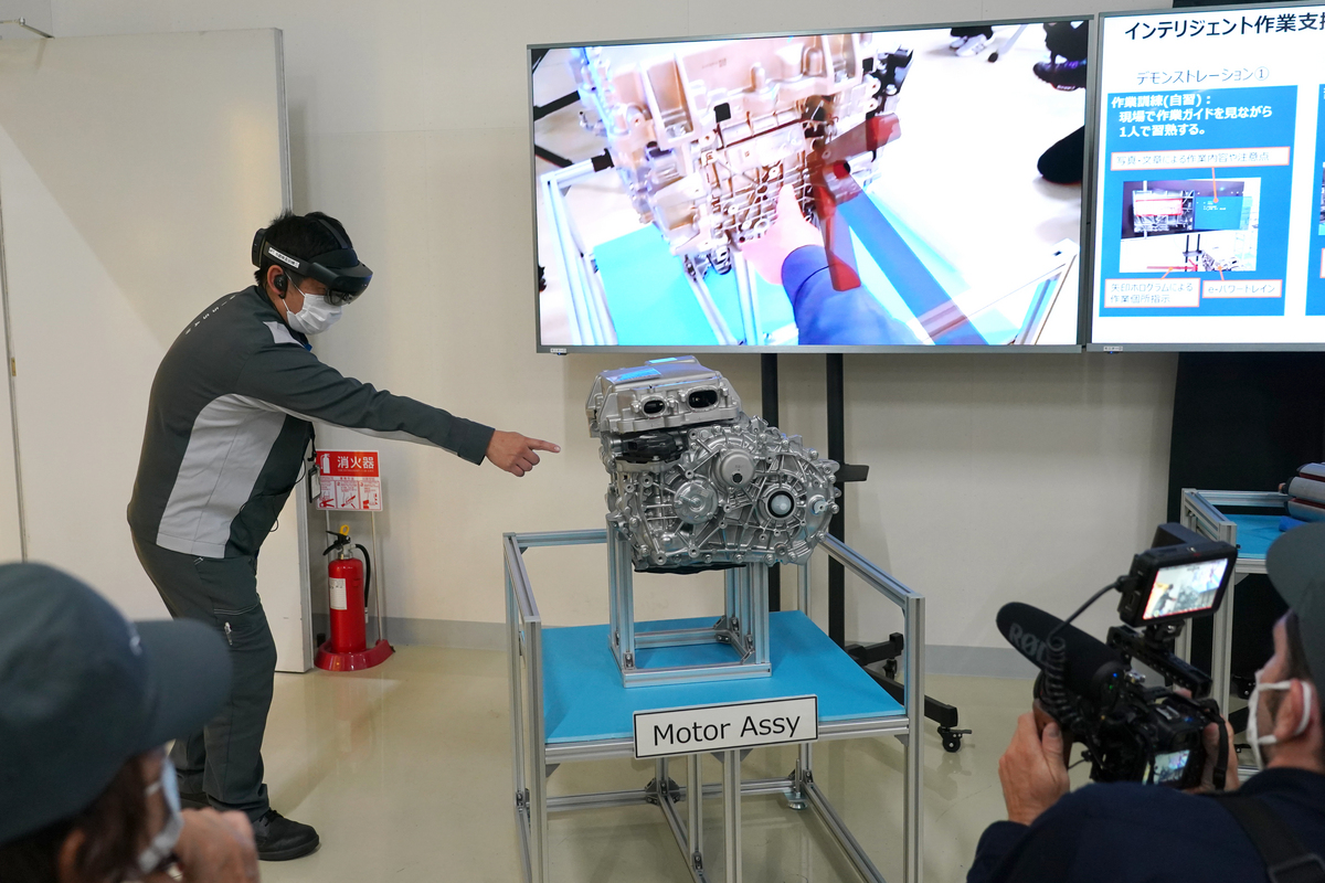 The changes don’t just impact the robots, but also the people that work on the lines. To increase efficiency, workers have mixed-reality headsets that are used for training and to complete quality control inspections.
