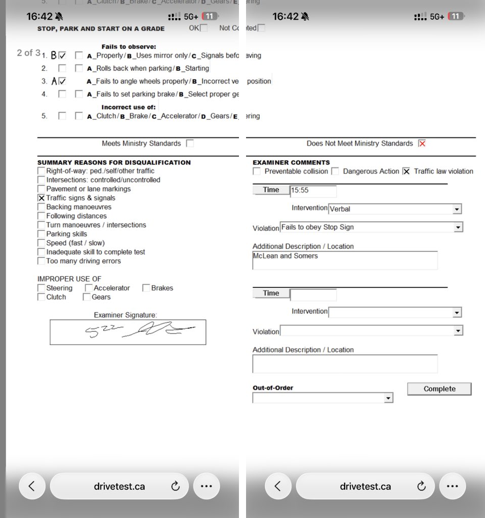 I failed my Ontario driver’s test for “running a stop sign.”