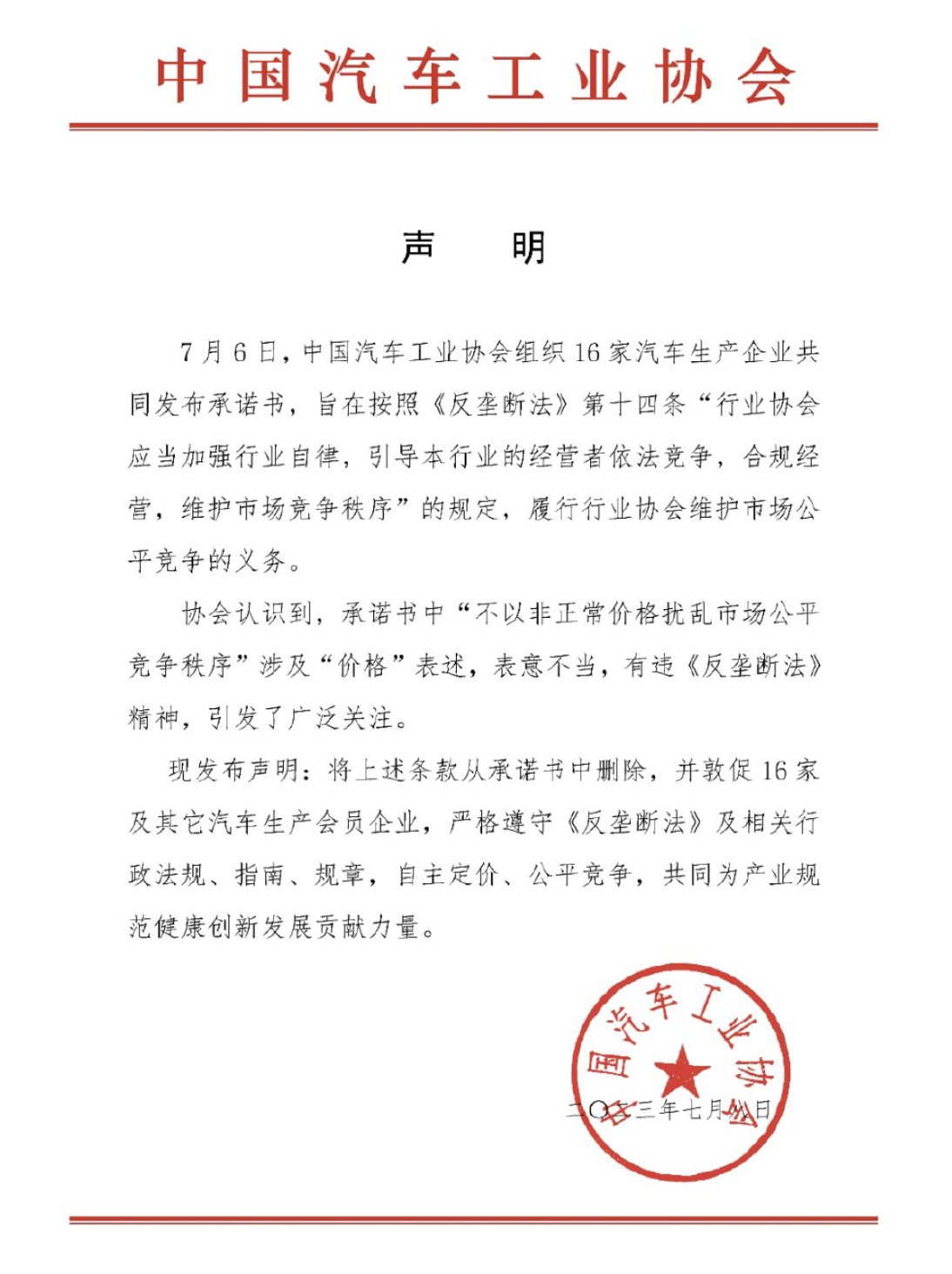 The statement goes on to encourage the 16 automakers to “strictly abide by the anti-monopoly law and related administrative guidelines and rules and set prices independently…”