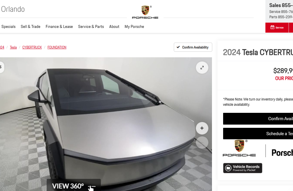 Last week, we reported that a Tesla Cybertruck sold at auction for $244,000. While the auction raised lots of attention, Porsche South Orlando didn’t want it for their personal collection, with it now up for sale on the dealership’s website.
