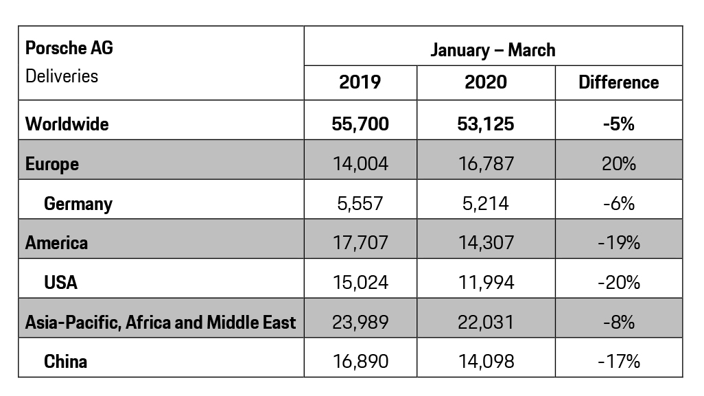 Overall deliveries came in at 53,125, which is down 5% compared to Q1 2019, which saw Porsche deliver 55,700 vehicles worldwide.