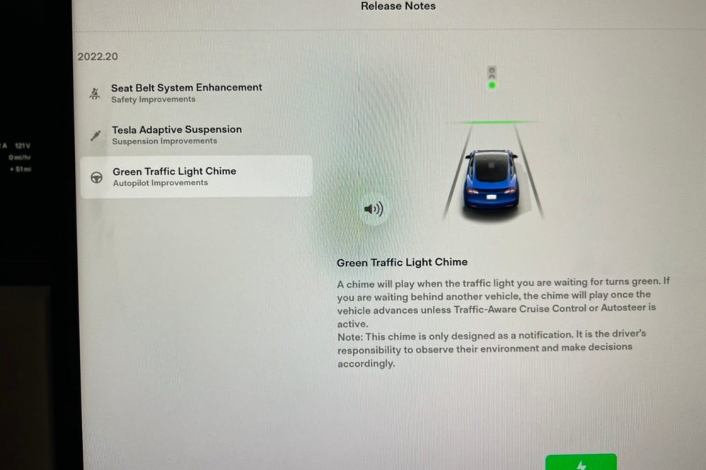 First and foremost, Green Traffic Light Chime is coming to all Tesla vehicles.