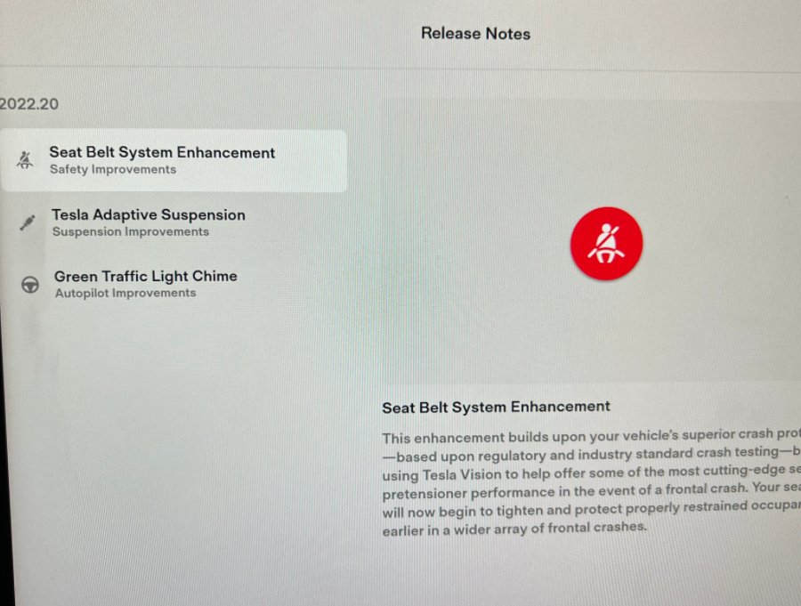 The improvements allow the system to use Tesla Vision to offer pretension in a frontal crash. With the update, your seat belts will tighten and protect properly restrained occupants earlier.