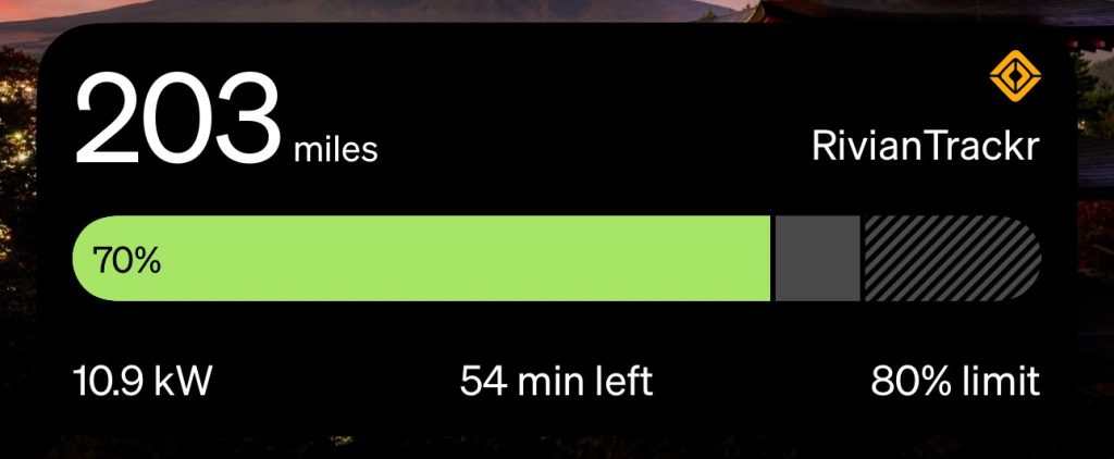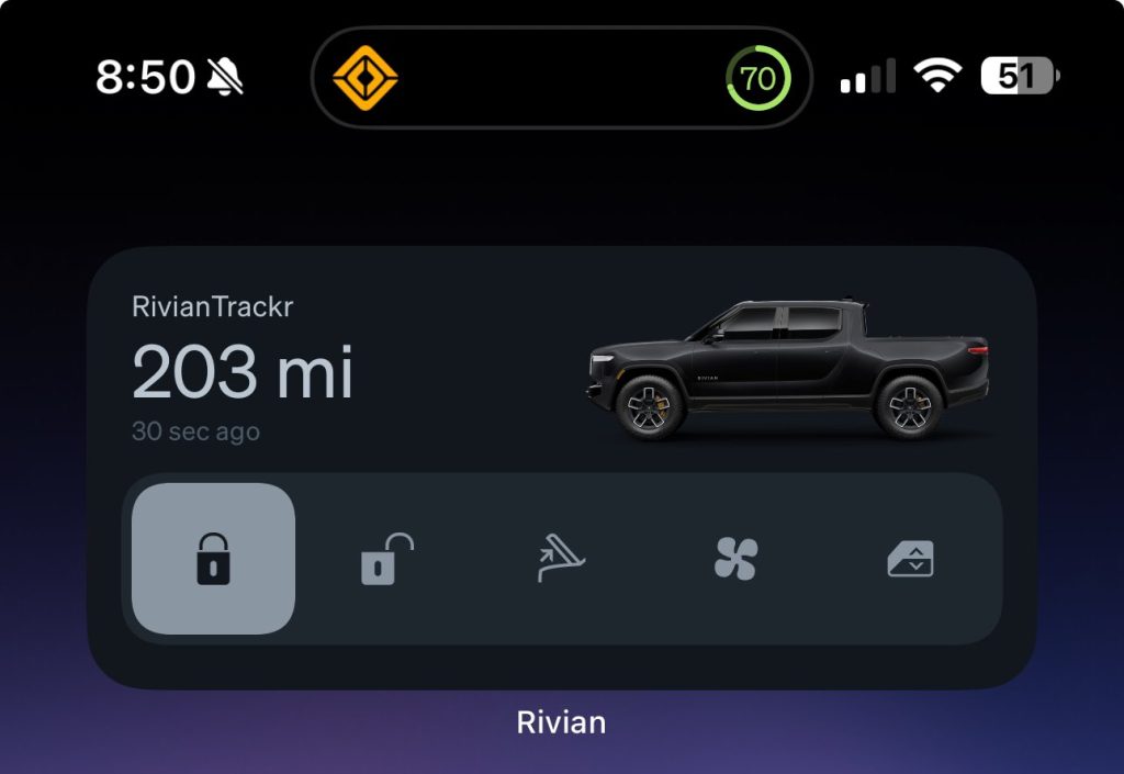 With the new app update, Rivian owners can now enjoy real-time updates on their vehicle’s charging progress, visible on the iPhone lock screen or the Dynamic Island feature on iPhone 14 Pro and iPhone 15 models. The widget includes detailed information such as the current charge percentage and range, charge speed, the estimated time remaining until the charge is complete, and the set charge limit.