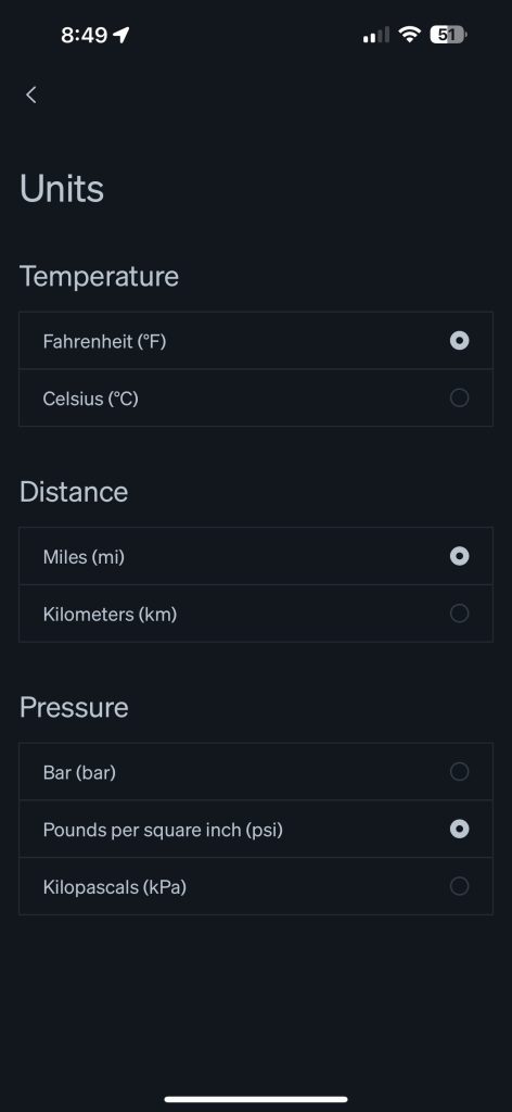 The app also includes additional features, such as advanced charging session graph data and the ability to change temperature, distance, and tire pressure units.