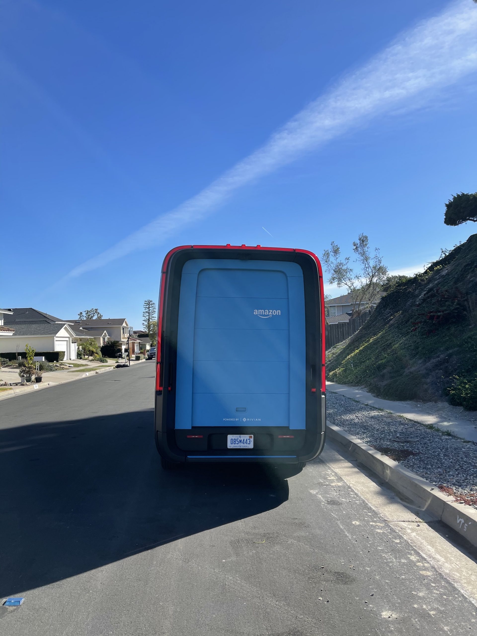 Spotted by Jeffrey Chen, the Amazon/Rivian delivery van was being driven by a manager from Amazon. Accompanying him was a Rivian engineer.