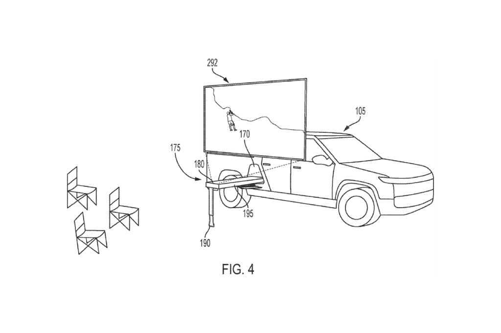 Rivian is exploring a unique addition to its R1T model – a mobile movie projector designed for the Gear Tunnel. Recently discovered at the United States Patent and Trademark Office (USPTO) by CarBuzz, this potential tech addition suggests that Rivian is looking to enhance the outdoor experience for its users.