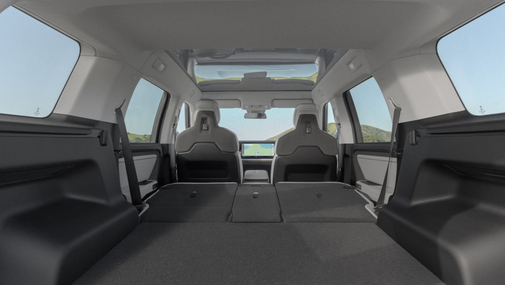 Inside, Rivian says the R2 is designed to maximize interior space and versatility. The SUV offers 90.1 cubic feet of total enclosed storage, including a 5.2 cubic-foot front trunk, dual glove boxes, and fold-flat rear seats that create a level loading surface for larger gear such as bikes or camping equipment.
