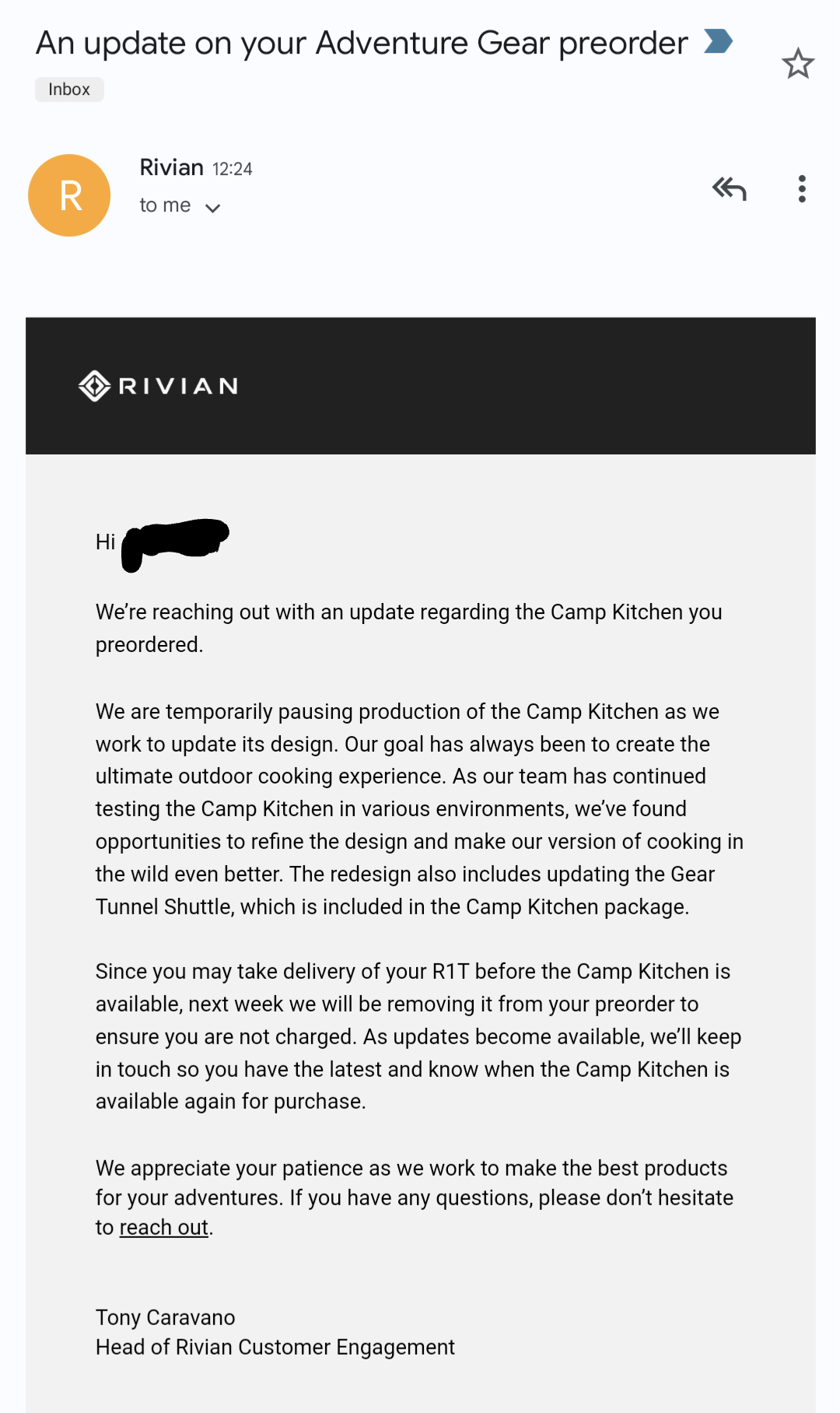 Rivian recently reached out to those who included the Camp Kitchen with their vehicle pre-order to inform them that the company wants to do a couple more tweaks to the design before delivering the module to customers.