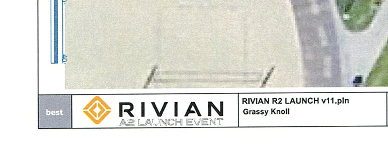 While the document itself makes no mention of the R2 platform, the accompanying plans are titled “Rivian R2 Launch,” leaving little doubt as to what is going to be revealed.