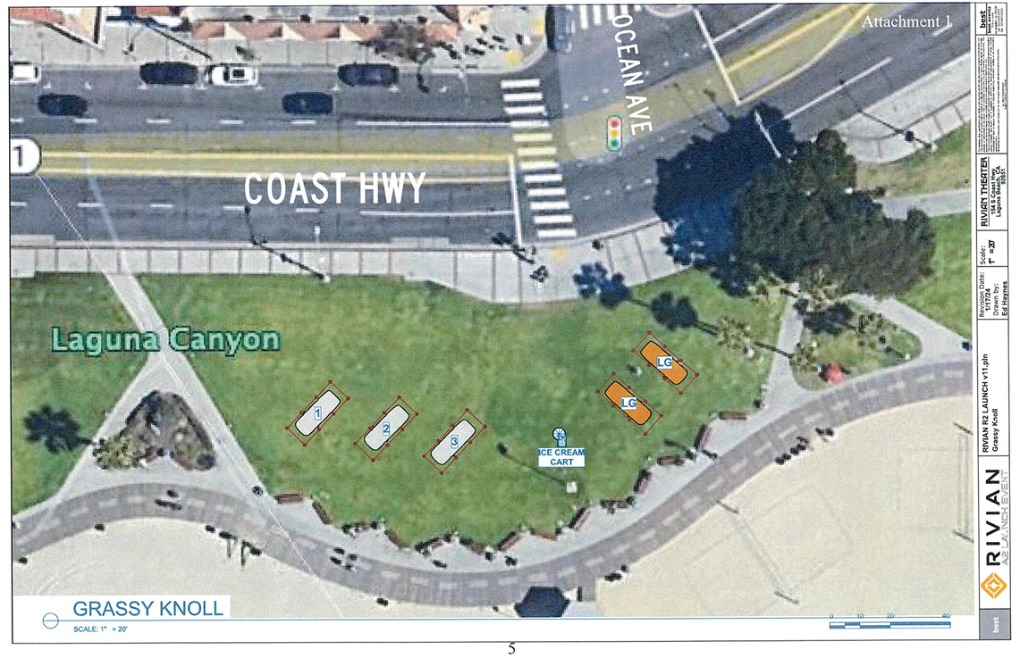 UPDATE 10:37am PT: At the meeting, Rivian withdrew the request to use Main Beach Park for the event. The event itself could still move forward with the Rivian Theater however. (via @RivianTrackr)