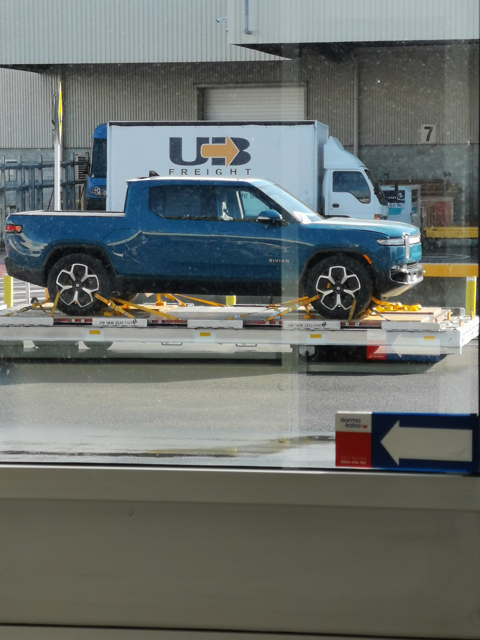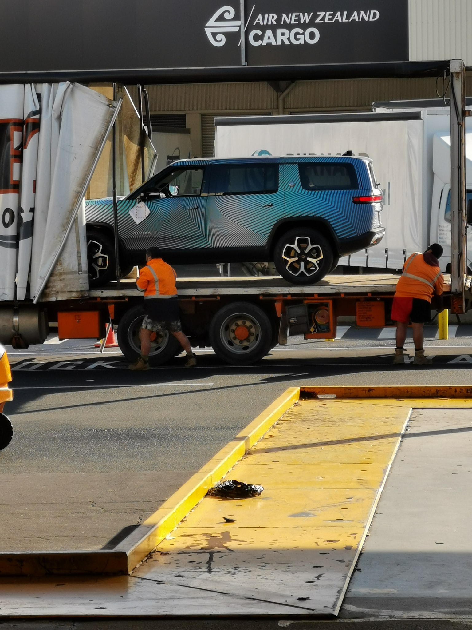 The trio of vehicles were spotted at a local airport by Tony Scott, who shared images of the R1T and R1S being taken out of the plane and loaded onto trucks for transport.
