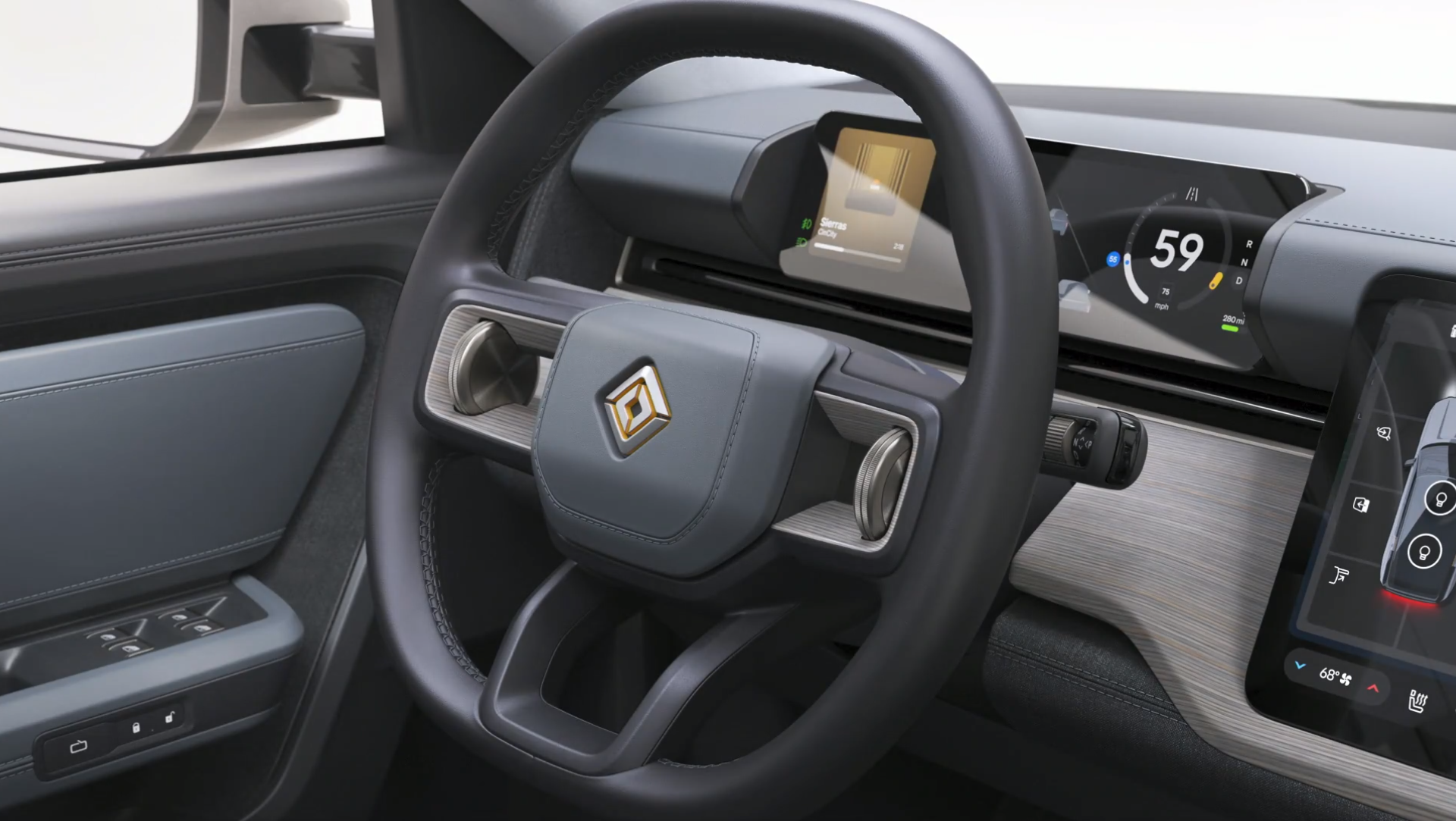 On the inside, the R2 retains the high quality materials and feel of the R1S. One of the highlights noted by Scaringe is that unlike the R1S, the R2 will not only come with a glovebox, but it will come with two. Another interior feature highlighted was a new steering wheel, which will feature large scroll wheels with dynamic haptic feedback that makes it feel “magical.”