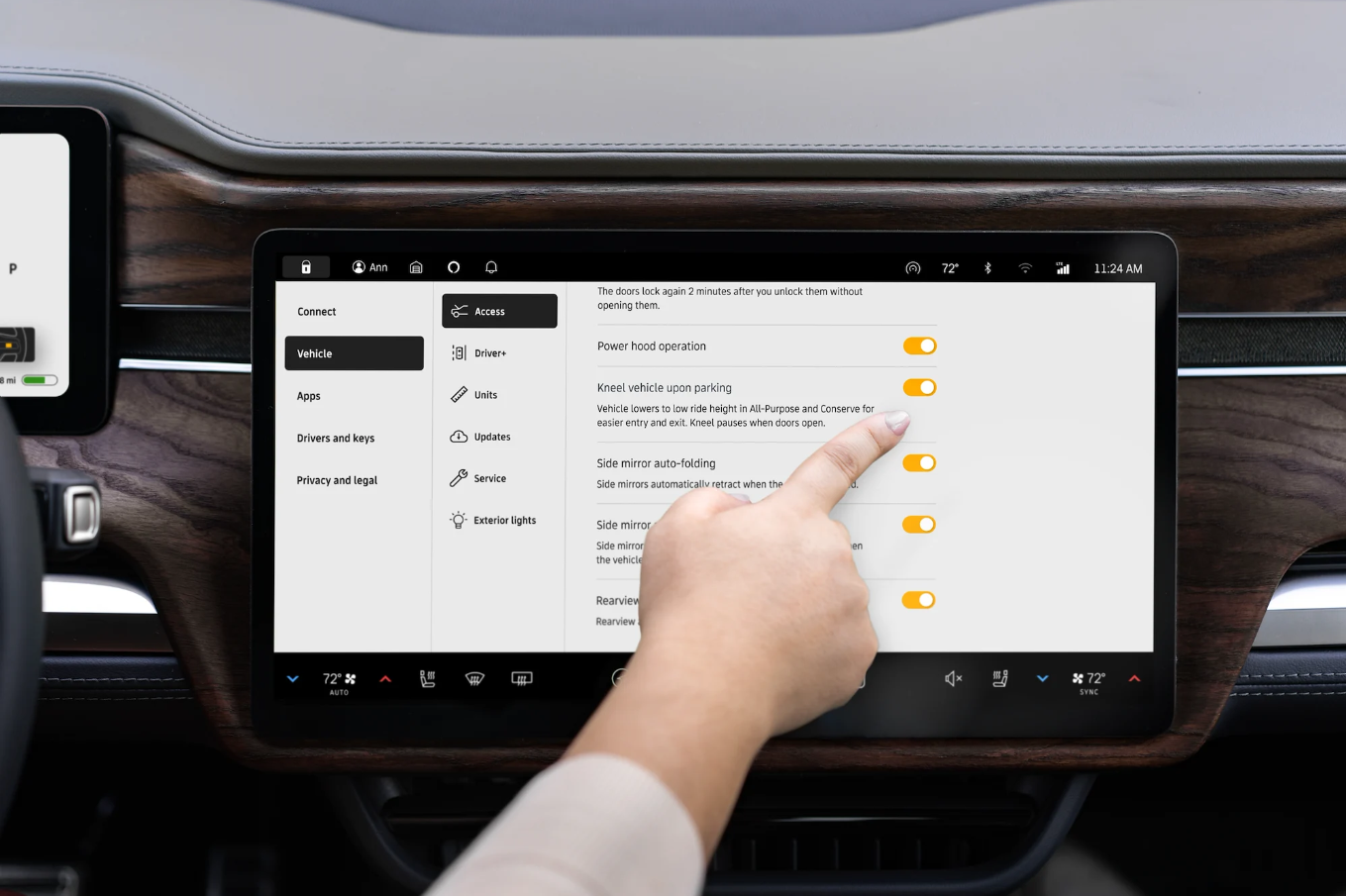 The feature uses the air suspension to lower the height of the vehicle to approximately 10 inches off the ground. Rivian says this will make it easier to not only get in and out of the vehicle, but also to access cargo in the frunk, bed, or rear cargo area of the R1T and R1S.