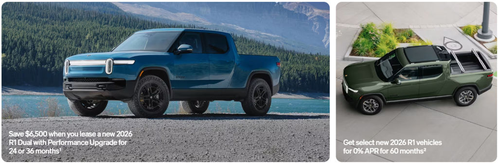 Additionally, Rivian is also advertising 1.99% APR for 60 months on other 2026 R1 configurations that fall outside the headline 0% offers.