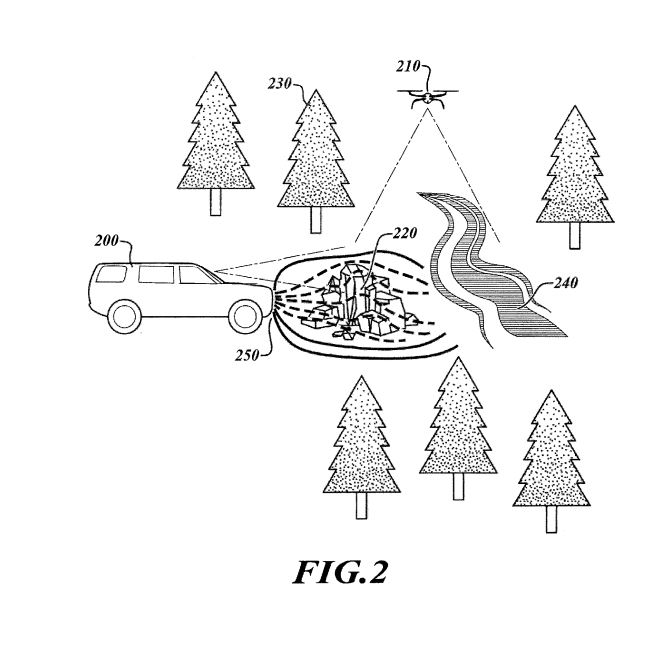 The drawings show that the system will combine the systems on the Rivian vehicle and data and sensor readings from a drone.
