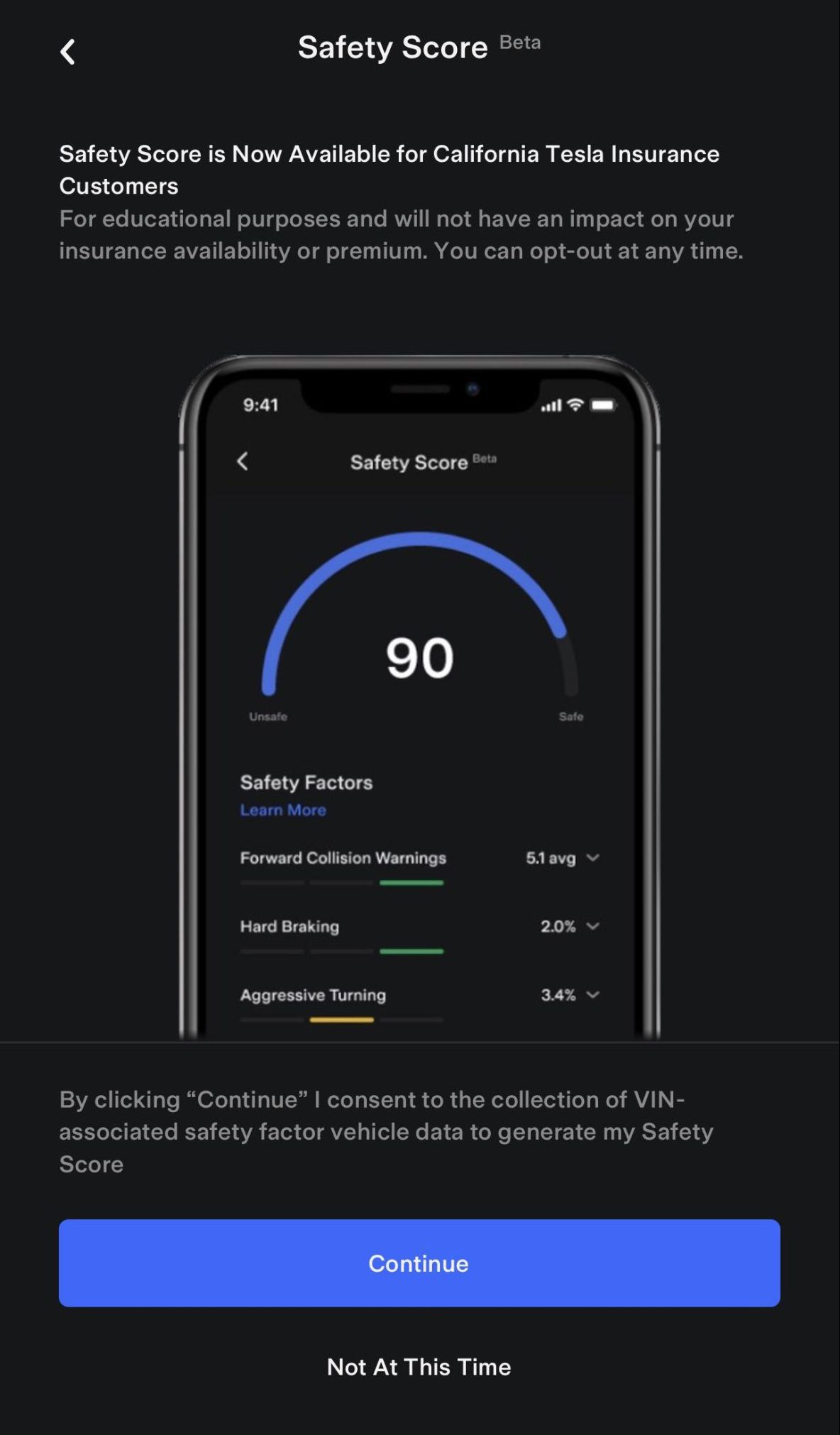 If you don’t live in California, or are not a Tesla Insurance customer in the state, you could soon have the option to add the Safety Score tool to your mobile app.