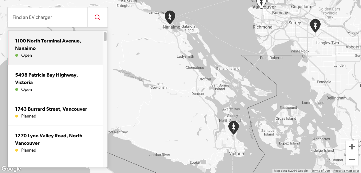 Just last month, the first Petro-Canada fast charger opened in Nanaimo, some 117km away from this Victoria location.