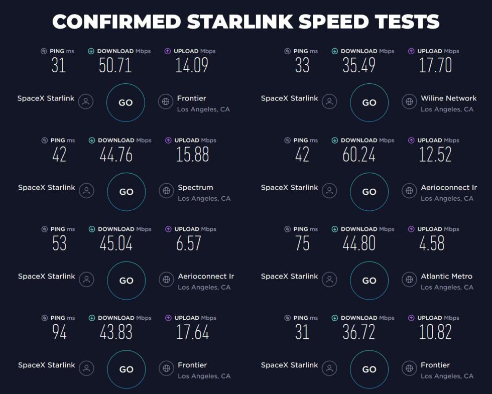Probably the most popular internet speed testing site available is Ookla’s Speedtest.net. Users on Reddit have been able to scour the site and so far found about a dozen speed tests registered to Starlink.