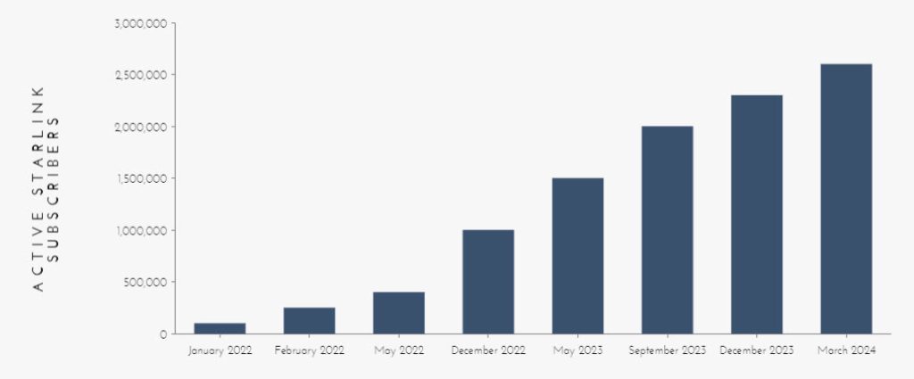When you take in all of the other subscriber milestones SpaceX has announced since the service launched in 2021, the growth has been strong, and if the pace continues as it has over the last two years, Starlink should easily have over 3 million subscribers by this summer.