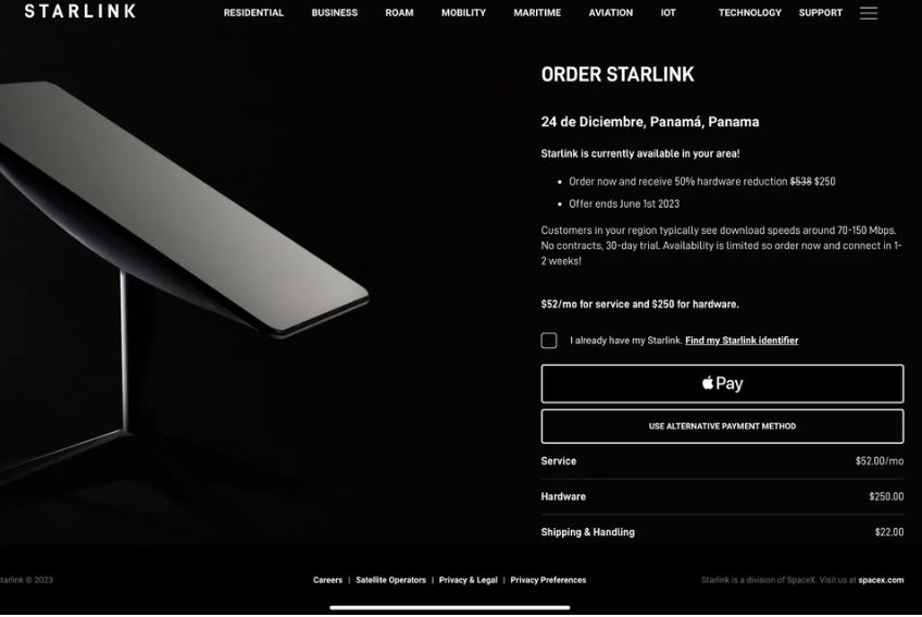 According to the Starlink site, Panama customers can now order their Starlink kit. The good news is Starlink is offering a 50 per cent discount on hardware until June 1. So, the current cost for the set-up is $250, with the service costing $52 per month.