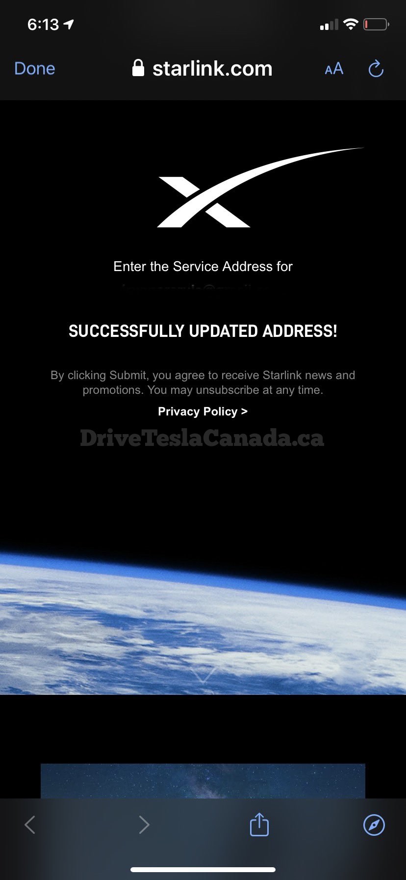 In these screenshots shared exclusively with Drive Tesla by one of our readers, the email, which was received at 6:06pm MDT, contains a link to the Starlink website where you can enter the address where you will be testing from.