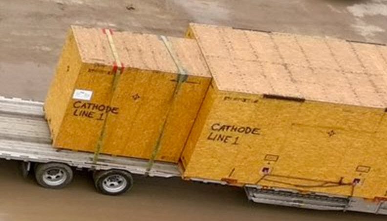 The boxes on the back of the semi-trailers were conveniently marked ‘ANODE LINE 1’ and ‘CATHODE LINE 1’, giving us a big clue about what was inside.