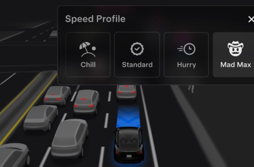 The new Mad Max profile goes beyond the “Hurry” setting, which is still available, allowing for higher speeds and more frequent lane changes, offering drivers a more dynamic experience in traffic. The inclusion of Mad Max mode comes after Tesla added a different driver profile at the other end of the spectrum in the first v14 update last week – Sloth Mode.