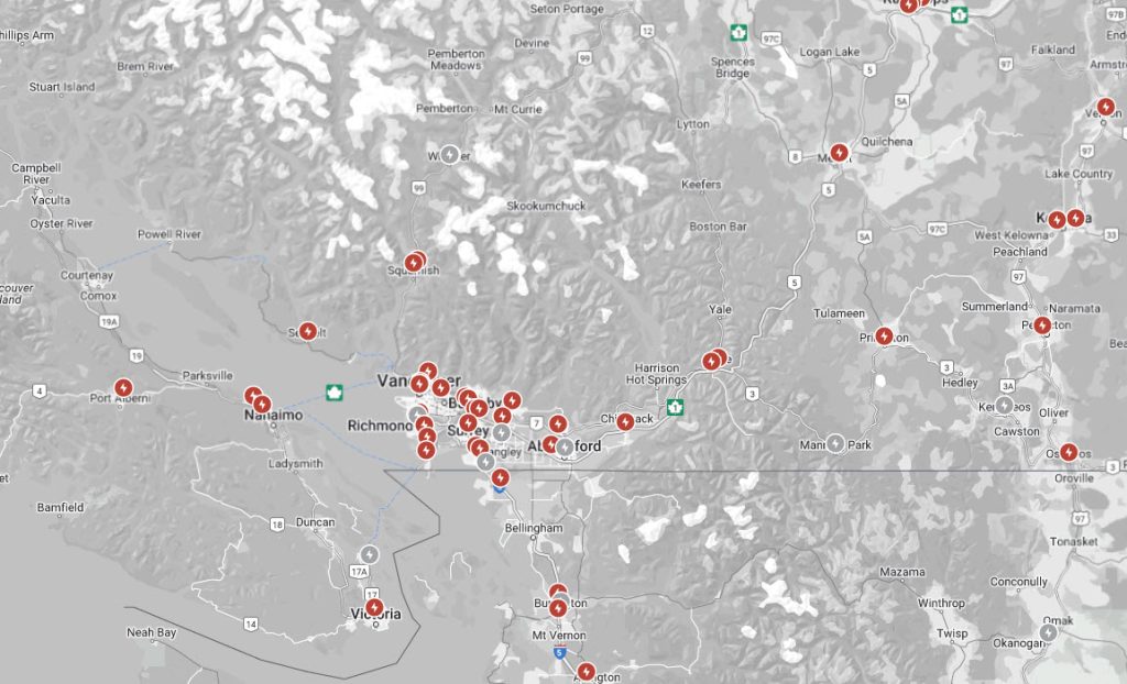 In the interior of the province a new station will be built in 2024 in Keremeos. New pins have also been added for Whistler and Manning Park, although we have already told you about both of those stations.